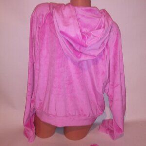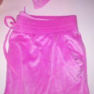 Victoria Secret Jogger Set Crop Top Sweater & Pants Velour Pink Pockets Solid Zi
