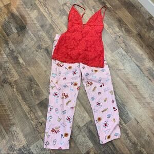 Victoria Secret Lace Cami & Cuddl Dudds Cotton Whimsical Print Pajama Pants M