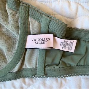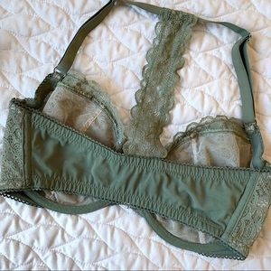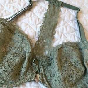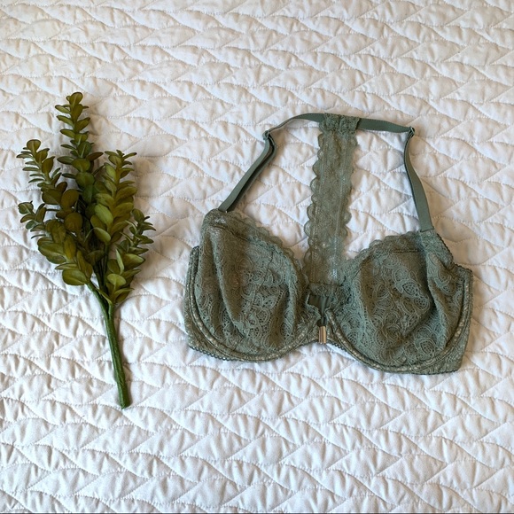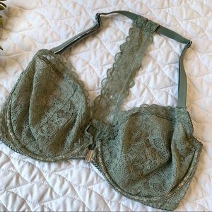 Beautiful Victoria’s Secret racer back lace bra in a gorgeous olive green color! Fits true to size, in excellent condition