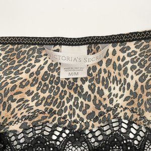 Victoria Secret Leopard Print Black Lace Satin Chemise Slip Dree with peek-a-boo lace detailing under the bust.