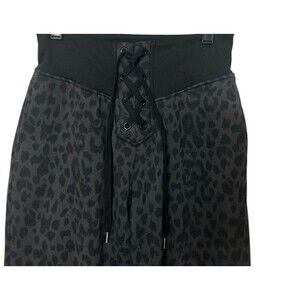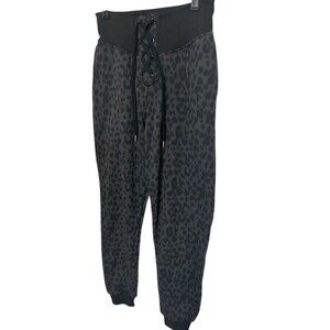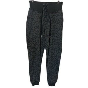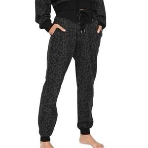 Victoria Secret Leopard Print Lace Up Fleece Joggers Black Sweatpants Sz S