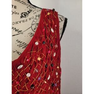 Victoria Secret Maxi Dress Sz L Embellished Satin Burgundy Fairy VTG Gold Label