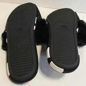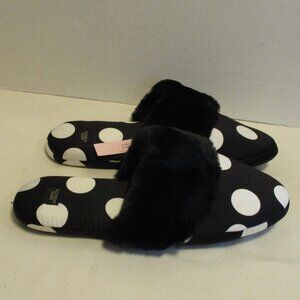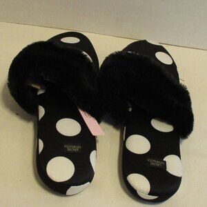 Victoria Secret NEW Woman Large (9-10) Black White Fuzzy Slippers With Case