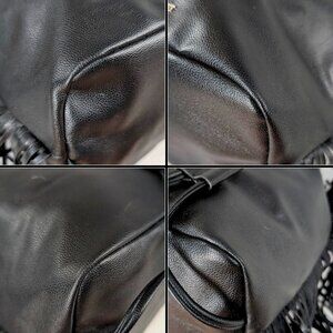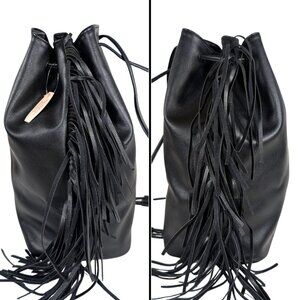 Victoria Secret NWT Black Faux Leather Drawstring Bucket Bag Backpack Tassels
