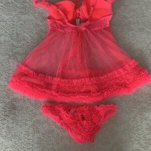 Vibrant pink, sexy and stunning 2 piece negligee. NWT. Satin ribbon and sheer fabric make this a must have for those special nights! Padded bra and front clip opening. Panties small