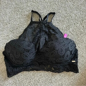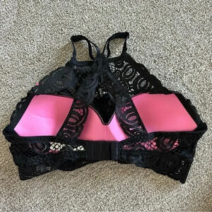 Victoria Secret PINK BRALETTE PUSH-UP Racerback Lace MEDIUM PURE BLACK