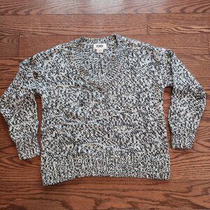 Victoria Secret PINK Black White Marled Knit V-Neck Sweater Y2K Boyfriend Sz M