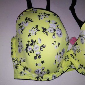 Victoria Secret PINK Bra 32DD Wear Everywhere Lightly Lined Yellow Black Neon