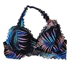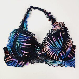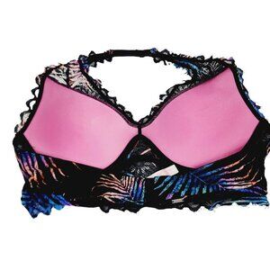 Victoria Secret PINK Bra Lace Bralette Lightly Lined Tropical Neon Bra Halter L