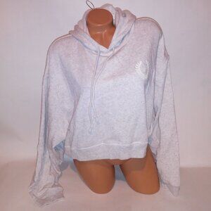 Victoria Secret PINK Hoodie Crop Sweater Gray Logo Long Sleeve Pullover Cropped