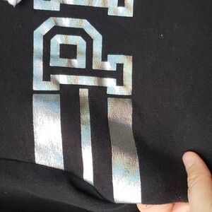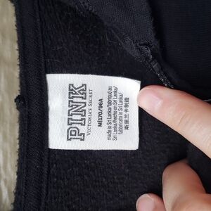 Victoria Secret PINK Hoodie Medium Black Full Zip Iridescent Logo M