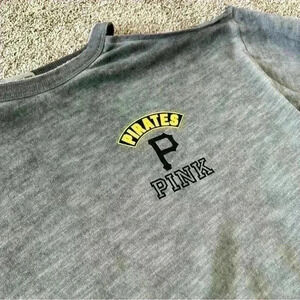 Great condition Victoria Secret PINK Pittsburgh Pirates Oversized Cold shoulder crop top. “3 strikes you’re out” on back.