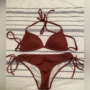Victoria Secret PINK Push-up Ribbed Maroon Bikini Top & Hipster Cheeky Bottoms