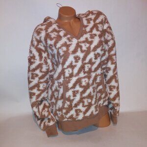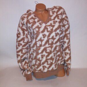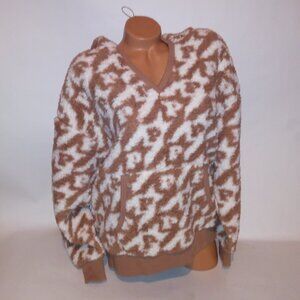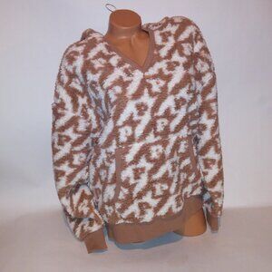 Victoria Secret PINK Sherpa Hoodie Beige White Logo Long Sleeve Sweater Pullover