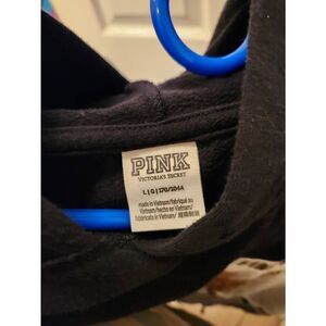 Victoria Secret PINK Sweater Womens Large Long Sleeve Spell Out Sequin Black *