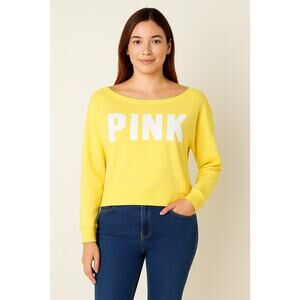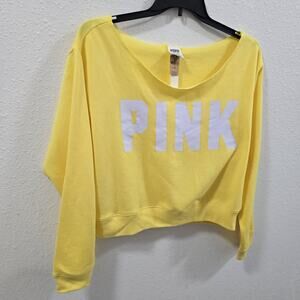 Victoria Secret PINK Sweatshirt XL Off Shoulder Tie Dye Yellow Pullover New