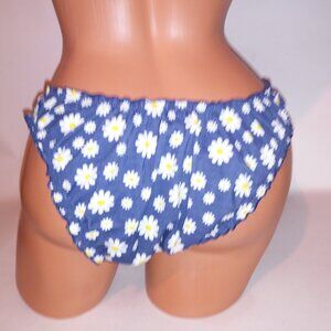 Victoria Secret PINK Swim Bikini Bottom Blue White Ruffle Cheeky Daisy Floral