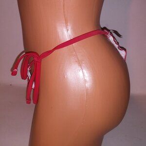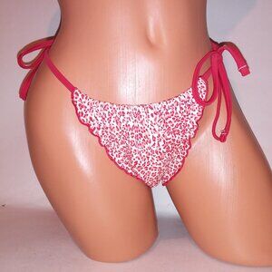 Victoria Secret PINK Swim Bikini Bottom Thong Red White Leopard Ruffle String Ti