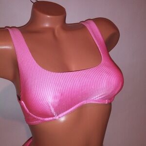 Victoria Secret PINK Swim Bikini XS Top & Bottom Pink Ribbed High Waist Cheeky