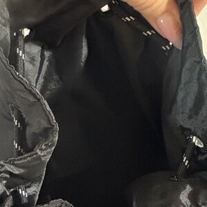 Sleek and versatile black drawstring backpack. Perfect for daily use and travel.