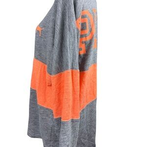 PINK Victorias Secret sweatshirt. Gray and orange. Long sleeves. Dog logo. Crew neck. Cotton and polyester. Excellent condition. Size large.