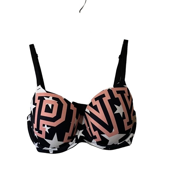 Victoria Secret PINK logo printed underwire lightly padded Bra Sz 32DD