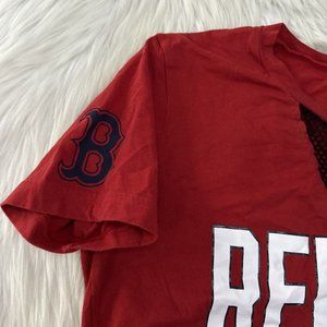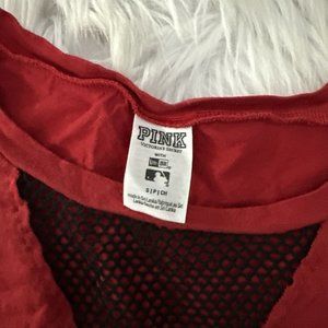 Victoria Secret PINK womens MLB Small Boston Red Sox Tee fish net v neck EUC