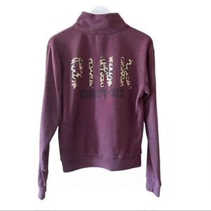 Victoria Secret PINK Burgundy Leopard Quarter Zip Womens Sweatshirt SZ XS