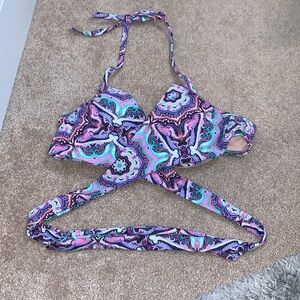 Victoria Secret Paisley Print pink and purple Twist Bathing Suit Top