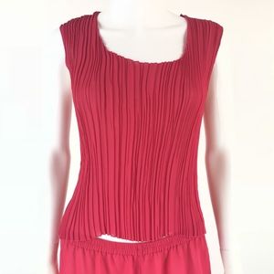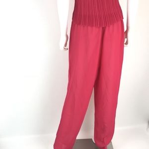 Victoria Secret Pajama Lounge Pant Set Vintage 70s Sz M Pink Pleated Top Sheer