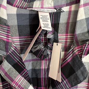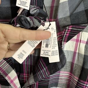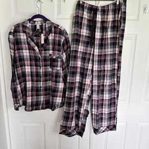 Victoria Secret Pajama Set Black Pink XL flannel Plaid Sleepsoft PJS Hair Tie