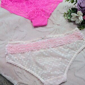 Cute VS panty set beautiful ruffles on the soft pink pair Sexy Little Things Collection. Beautiful Lace Fuchsia pair both NWT size Medium