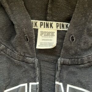Victoria Secret Pink Black Crop Hoodie Logo Thumbholes Size Small