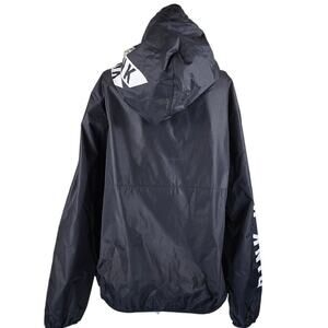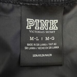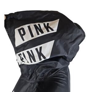 Victoria Secret Pink Black Large Logo Pockets Hooded Rain Packable Jacket M