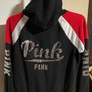 Victoria Secret Pink Collection Black and Red Zip-Up Hoodie and bottoms