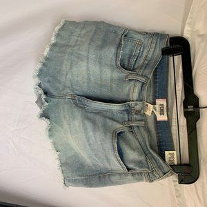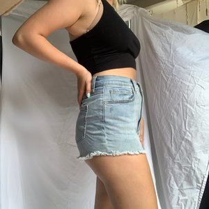 Victoria secret pink denim cut off shorts. I generally wear a size 27-28. The shorts have a lot of stretch so I think they can fit bigger. The shorts are marked as a 10 but I think they are better suited for a size six