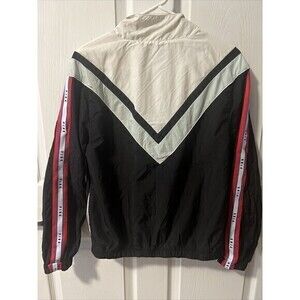 Victoria Secret Pink Flower Embroidery Windbreaker Sz XS Chevron Black White