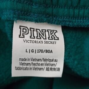 Victoria Secret Pink Green Gold Logo Athletic Atleisure Women's Sweatpants L In Excellent Condition. Purchased Last Year, Never Worn Super Soft and Comfortable. Approximate Measurements (flat) Inseam 28" Waist 15" Rise 14" Bin 9579