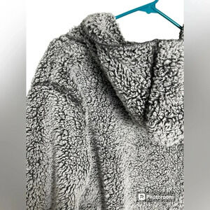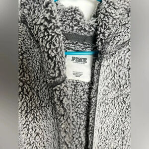 Women's PINK Victoria's Secret Gray Hooded Sherpa XS/S Jacket Pockets Coat Fleece.