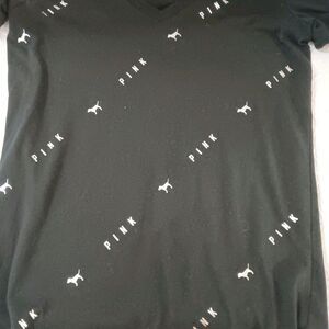 Victoria Secret Pink SZ XS. Black W/Silver Dogs & Logo. Sequin Accents