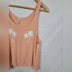 Stay cool and stylish with this peach tank top featuring delicate palm tree embroidery. Perfect for casual outings.