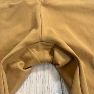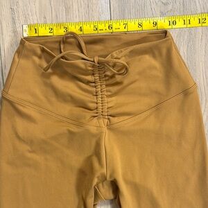 Victoria Secret adjustable tie waist high waist leggings in a golden yellow color. Pink logo on back of the waistband is a plus feel. See photos for measurements.