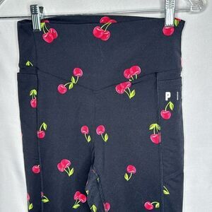 Victoria Secret Pink Ultimate Cherry Print Side Pocket Leggings. Size Small.