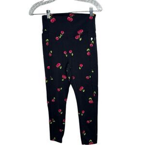 Victoria Secret Pink Ultimate Cherry Print Side Pocket Leggings. Size Small. Colors: black and red. Excellent condition.