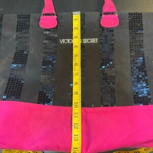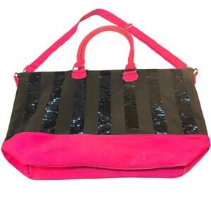 Victoria Secret Pink and Black Sequin Stripe Weekender Shoulder Tote Bag