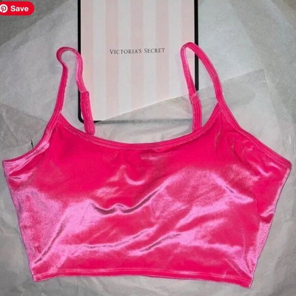 Victoria Secret Pink lightly lined velvet crop top hot pink Size S