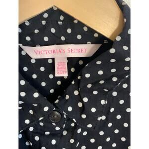 Cute black gown with white polka dots, button front. Size xs with measurements in pictures.