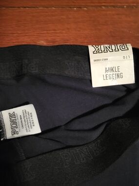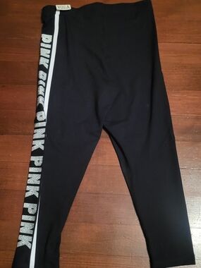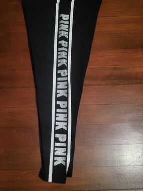 Black Leggings with rhinestone "PINK" detail going down right leg. Perfect Condition and new with tags. No Flaws!!!