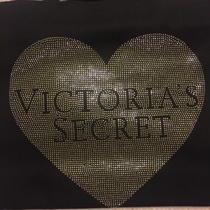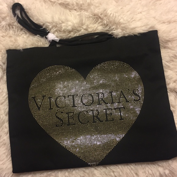 This bag has never been used, and is brand new still in plastic casing! This is not sold in stores. This tote is full of bling! Has rhinestone heart and says Victoria’s Secret on the front. This bag is so versatile, you could use it as a handbag, travel bag, beach bag, grocery bag or even as a book bag for college!