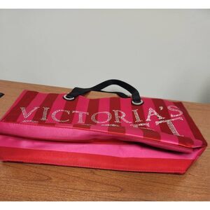 Victoria Secret Rhinestones Pink Red Vertical Stripe Large Tote Bag Weekender